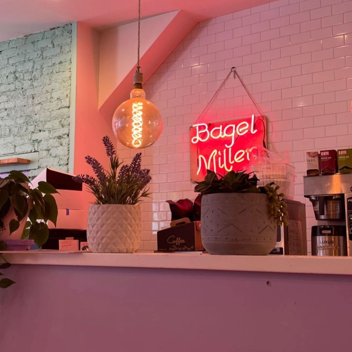 We’ve had this location for years but not always as Bagel Miller. It was formerly Baker Miller- a bakery & brunch restaurant that lasted 10 years. It closed in January of 22 to make way for Bagel Miller. We have 30 indoor and 30 patio seats. This cute spot is Wednesday- Sunday and is where all the bagel magic happens!